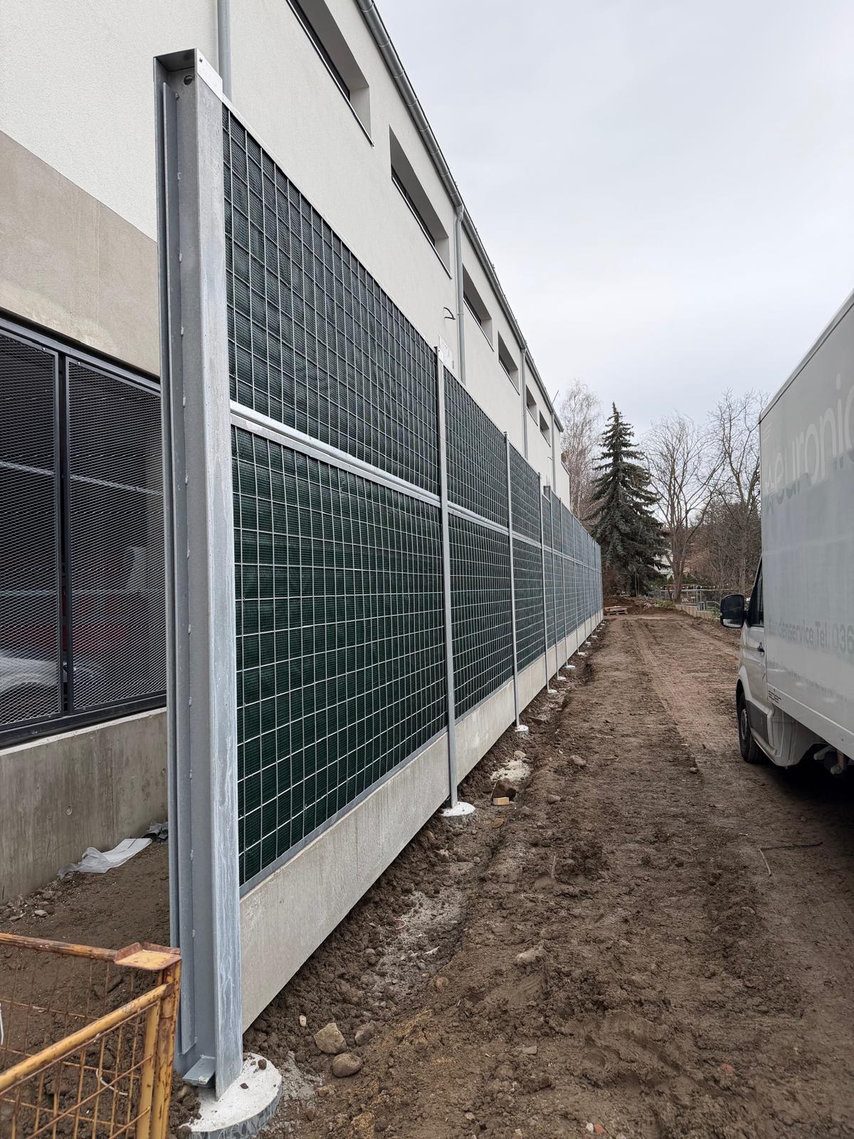 • Optional können Rankgitter oder Pflanzsysteme ergänzt werden, um eine natürliche Begrünung der Lärmschutzwand zu ermöglichen.