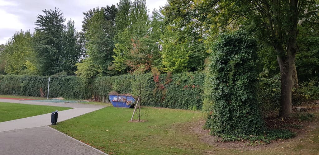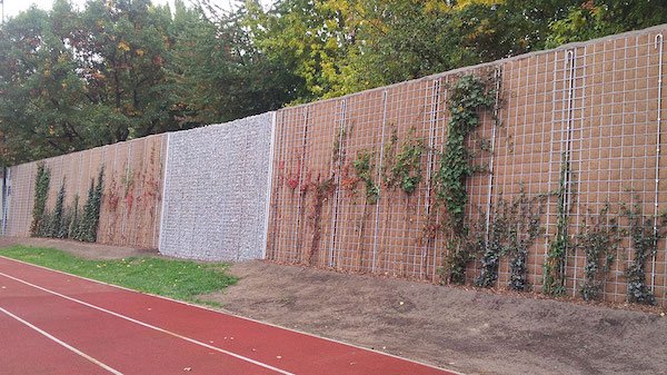 Im Stadtteil Kray in Essen wurde eine 4 Meter hohe und 50 Meter lange begrünte Lärmschutzwand entlang eines stark frequentierten Sportplatzes errichtet. Ziel des Projekts war es, die Geräuschbelastung für die angrenzenden Wohngebiete deutlich zu senken und gleichzeitig ein ökologisch wie ästhetisch nachhaltiges Bauwerk zu schaffen.