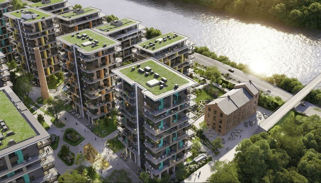 Die 10.000 m² große Wohnsiedlung soll mit ihrem Ambiente und architektonischen Stil eine einzigartige Atmosphäre zum wohnen schaffen. Dabei werden innovative Lösungen eingesetzt: Wohngebäude mit begrünten Dächern und großflächige Parks mit verschiedenen Funktionen bieten ein freundliches und liebenswertes Umfeld für die künftigen Wohnungsbesitzer.